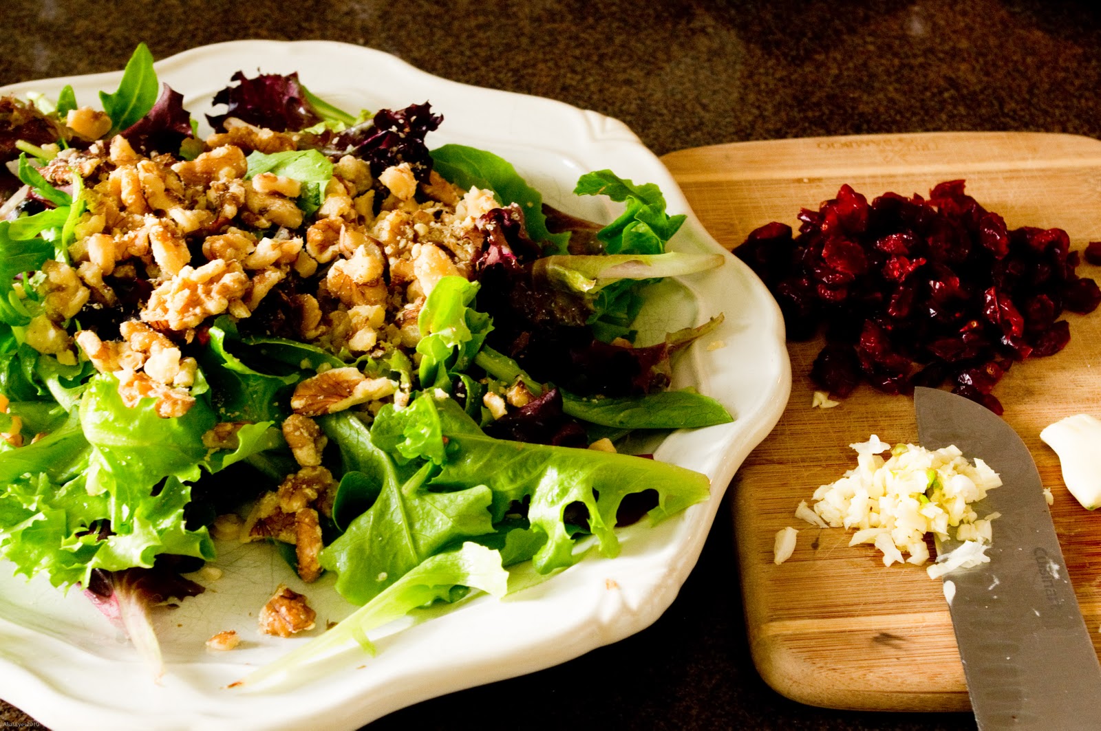 p.s. My new fav salad is a mix of lettuces, crushed walnuts, dried cranberries, a few cloves of minced garlic and some olive oil and balsamic vinegar. SO YUM!